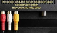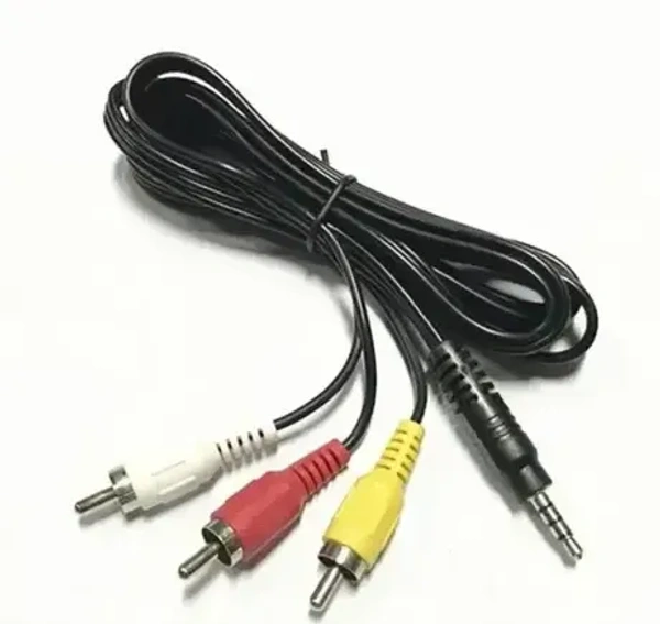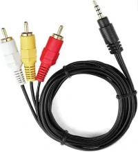 High-quality AV cable with 3.5 mm TRS 3-Pole Plug to 3 RCA Male connectors for seamless audio and video transmission. Ideal for connecting TVs, amplifiers, speakers, and digital audio-visual equipment.